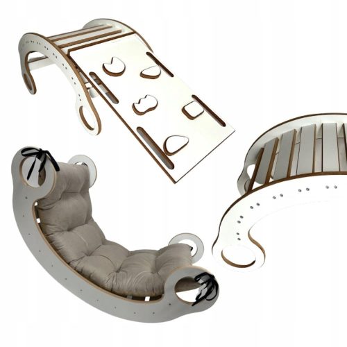 Drewniany Bujak Montessori + Zjeżdżalnia + Ścianka wspinaczkowa + Poduszka Beżowa - wszechstronna, kreatywna zabawka dla Twojego dziecka