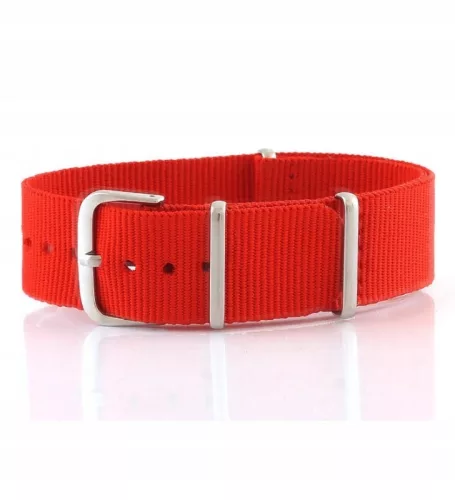 Parciany pasek do zegarka firmy Dioly w kolorze Czerwonym, wykonany jest z taśmy parcianej. Pasek. W pasku osadzono sprzączkę w kolorze Srebrny. Paski NATO idealnie sprawdzą się  w lato i nie tylko. Modele wzorowane na paskach zegarków Daniel Wellington.