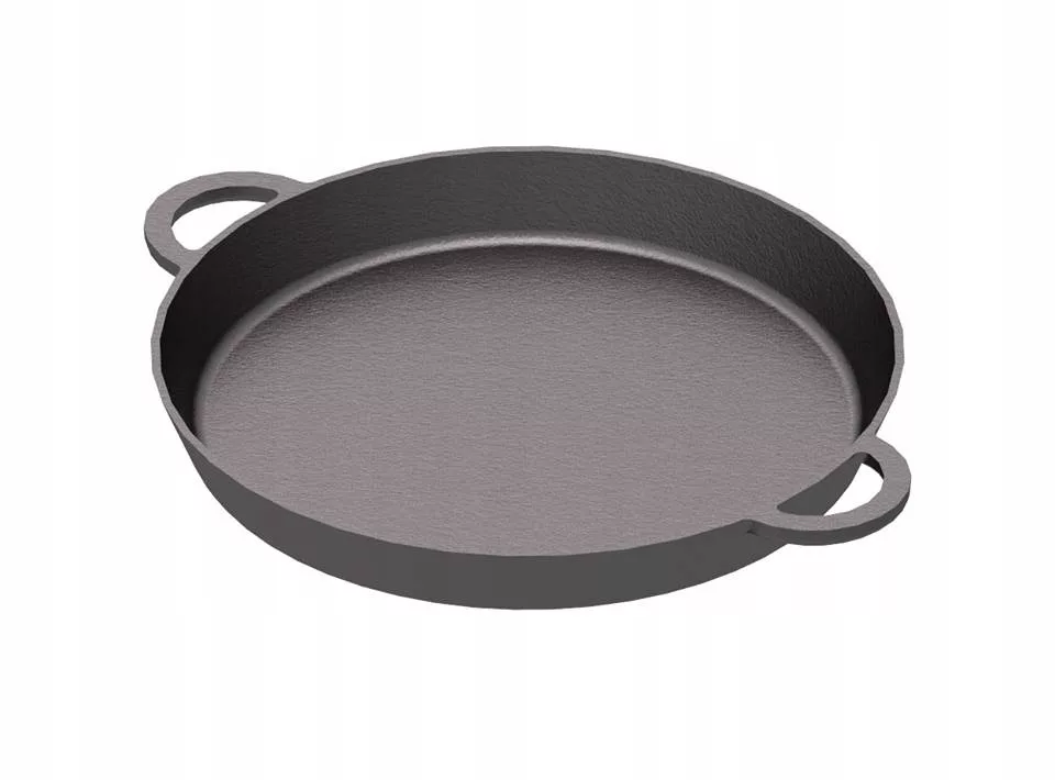 Patelnia może posiadać 3 nawiercone otwory na łańcuch, aby można ją było zawiesić nad paleniskiem.