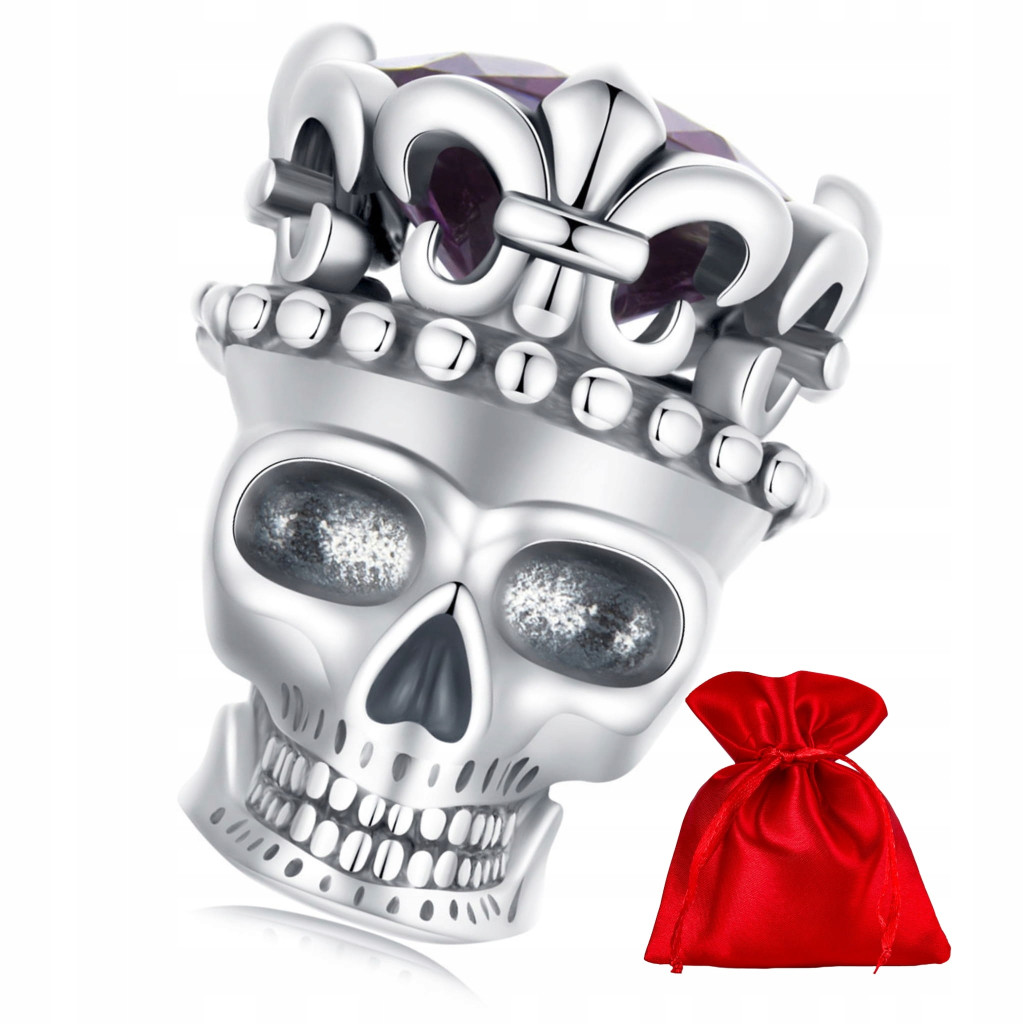 Srebrny charms: czaszka z kryształową koroną.
