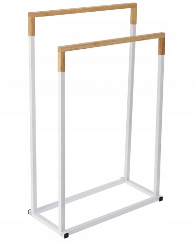Wieszak łazienkowy stojący biało-brązowy na ręczniki to funkcjonalny i stylowy element wyposażenia łazienki.