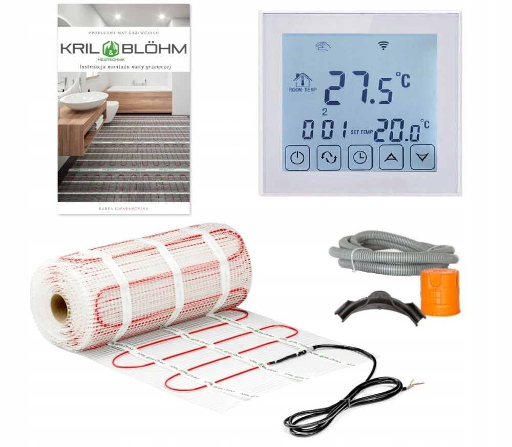 Czerpiąc z wieloletniego doświadczenia Kril&Blohm, Holenderskiego producenta ekologicznych systemów grzewczych,  niniejszym oferujemy Państwu gotowy zestaw montażowy z matą grzewczą 150W/m2 KRIL&BLÖHM model: AFVAL 12m2 + Regulator temperatury TDS23 WiFi Biały
