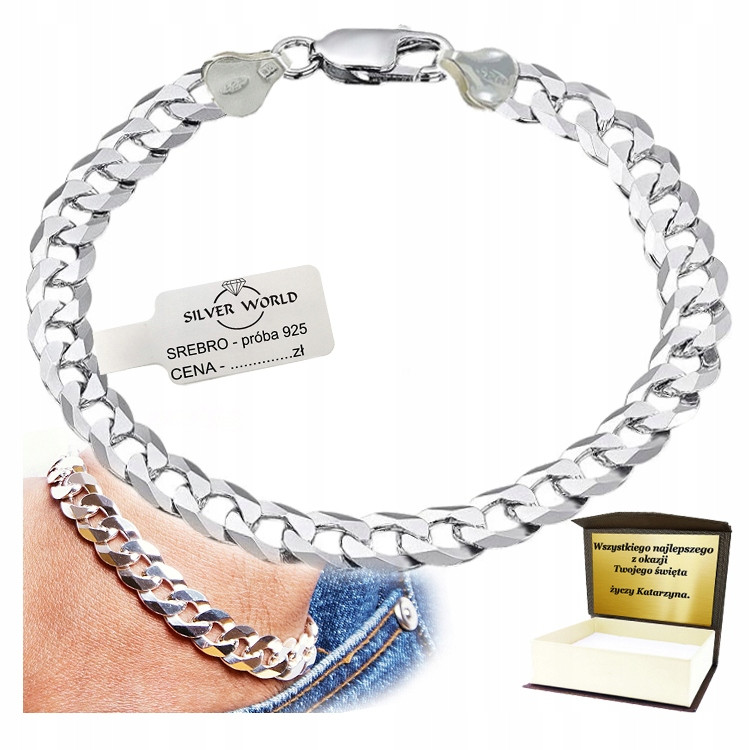 BRANSOLETKA SREBRNA MĘSKA SZEROKA PANCERKA PEŁNA OKAZAŁA 8,4 mm