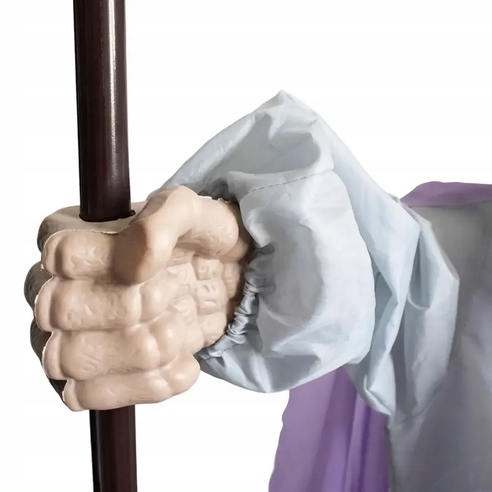Niesamowite efekty świetlne i dźwiękowe: Aktywuj świecące niebiesko-zielone oczy czarownicy i niesamowite dźwięki, aby uzyskać mrożącą krewność.Fioletowa spódnica Horror Witch, wsparta wewnętrznie, tworzy pływającą iluzję, która przestraszy wszystkich przechodniów.