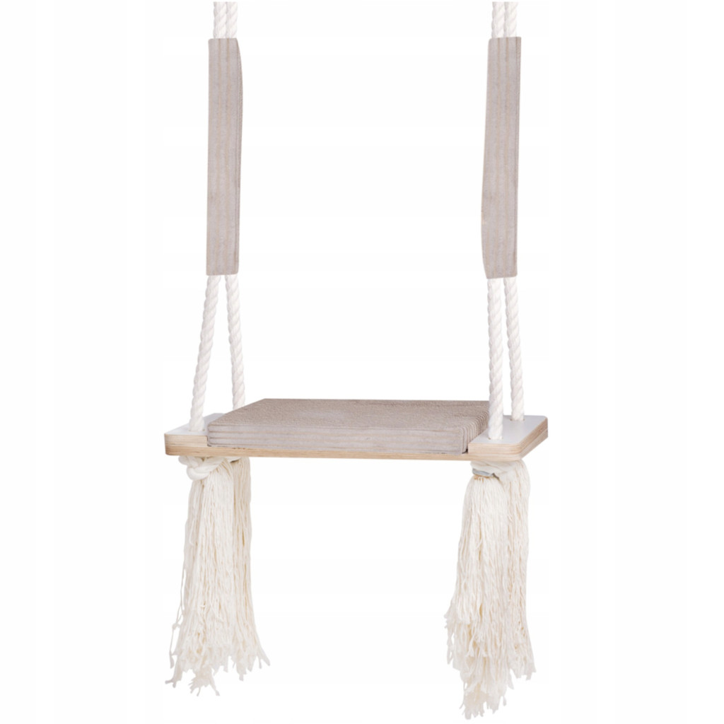 • Stylowy design: pastelowe kolory w połączeniu z dekoracyjnymi, bawełnianymi frędzlami dodaje huśtawce wyjątkowego charakteru i uroku.