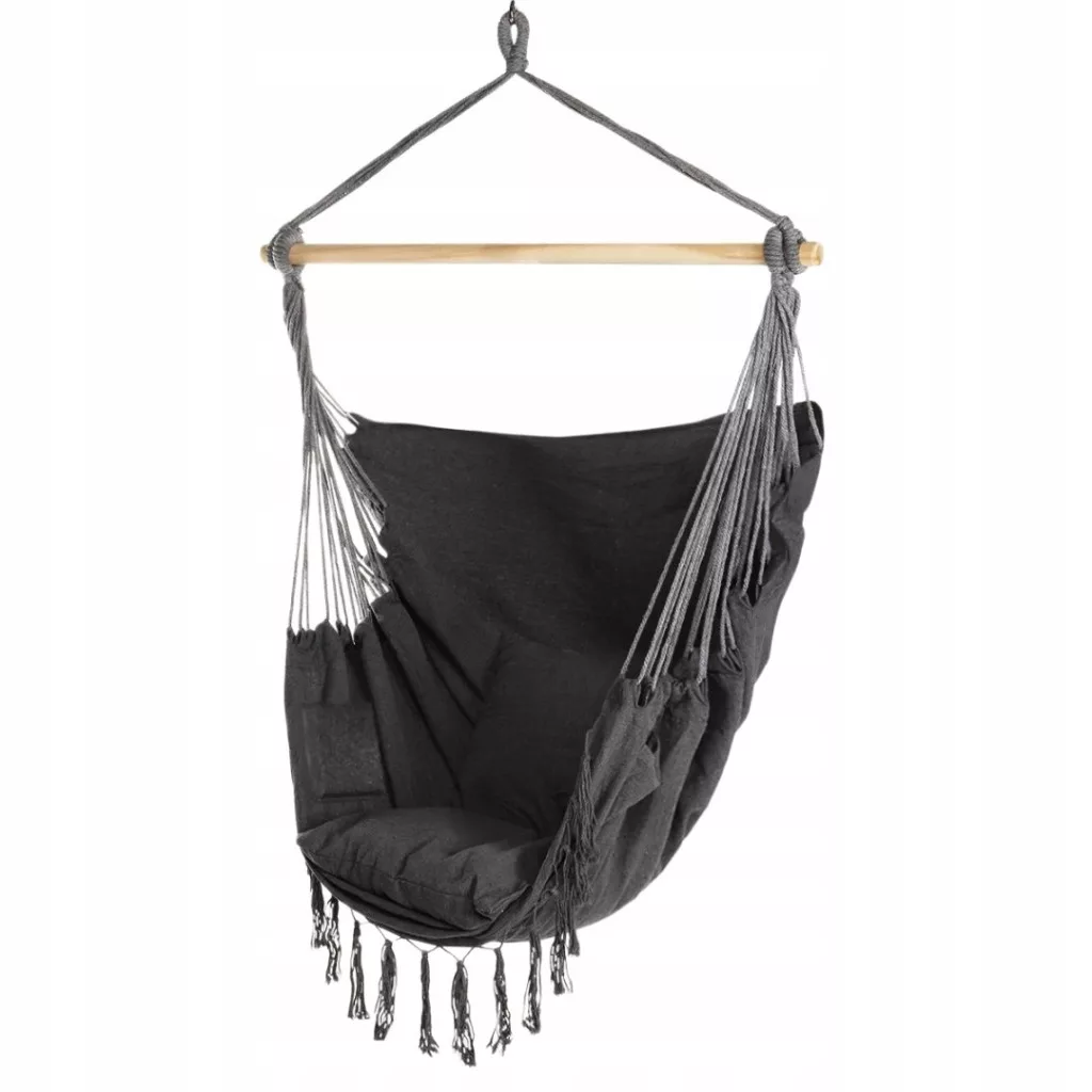 HAMAK BRAZYLIJSKI KRZESŁO WISZĄCE FOTEL WISZĄCY HUŚTAWKA OGRODOWA PODUSZKA BAHIO GRAFITOWE