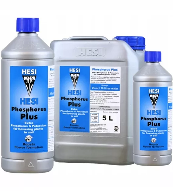 Wzmacniacz do kwitnienia gleby HESI - Phosphorus Plus jest stosowany w połączeniu z kompleksem Hesi Bloom w drugiej połowie fazy kwitnienia. Podczas kwitnienia roślina ma zwiększone zapotrzebowanie na fosfor i potas. Korzystając z Phosphorus Plus, dajemy roślinom właściwe składniki odżywcze w odpowiednim momencie: fosfor do dodatkowego formowania kwiatów i potas w celu szybkiego transportu składników odżywczych do kwiatów. Nawozy Hesi zostały zrównoważone w stosunku do środowiska glebowego i dzięki temu ​​rośliny rosną w optymalny sposób. Dzięki zastosowaniu wysokiej jakości składników rośliny absorbują wszystkie podawane im substancje. Phosphorus Plus wpływa pozytynie na powiększanie się kwiatostanów! HESI Phosphorus Plus nadaje się również do leczenia niedoboru fosforu lub potasu.