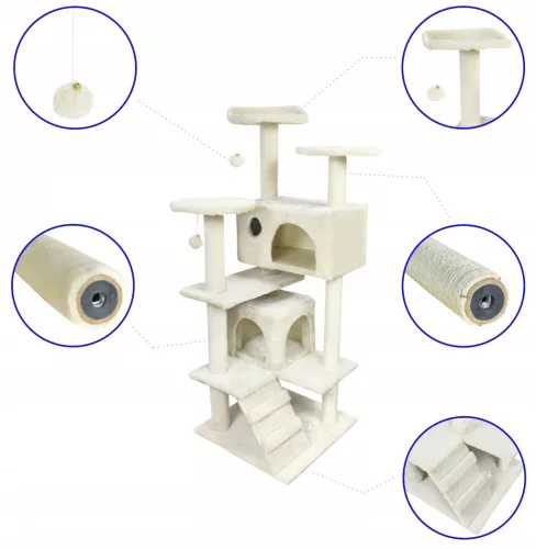Stabilny i trwały stelaż. Słupki pokryte mocnym i grubym na 4mm sznurem sizalowym który z pewnością wytrzyma niejedną zabawę i ostrzenie pazurków twojego kota.