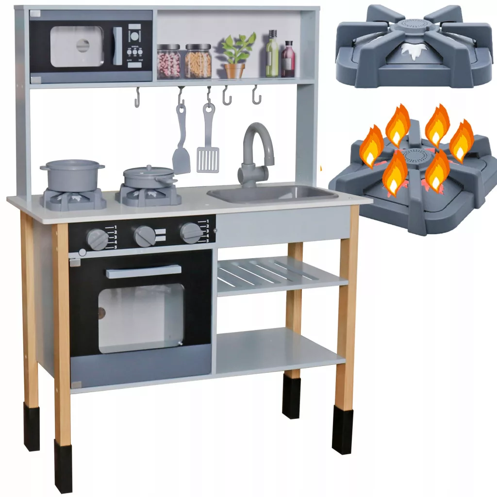 Holzküche für Kinder HERD + Zubehör + Spüle + Mikrowelle