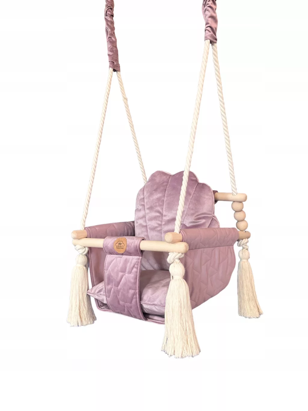 Klasyczna huśtawka z miękką poduszką stylizowaną na muszelkę  to propozycja dla wszystkich małych fanów bujania. Jest to także dekoracja dziecięcego królestwa, podkreślająca charakter wnętrza.