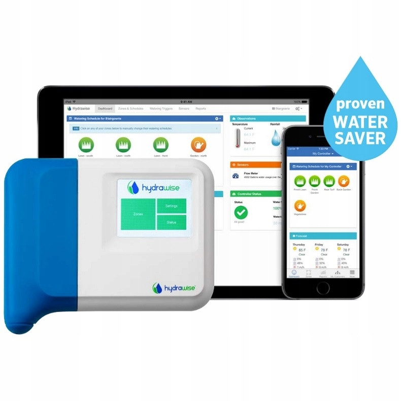 Internetowy, wewnętrzny sterownik HC-1201i daje możliwość kontroli  instalacji nawadniającej przez darmową aplikację Hydrawise. Programowanie urządzenia może odbywać się przy pomocy dotykowego wyświetlacza lub smartphona z systemem iOS, Android.