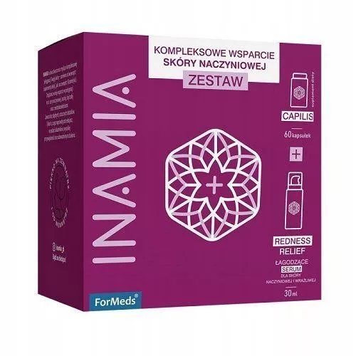 INAMIA Redness Relief Zestaw Łagodzące serum, 30ml + Capilis, 60 kapsułek