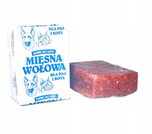 BEZ KOŚCI WOŁOWA karma dla psa 100% produkty pochodzenia wołowego i wołowina. Idealna jako posiłek samodzielny, w formie nagrody lub dodatek do diety.