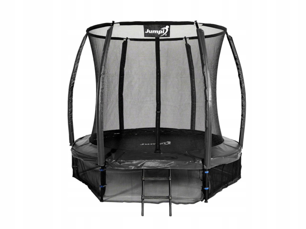 ✨ Trampolina Ogrodowa Jumpi 252cm/8FT Maxy Comfort Plus CZARNA Z Wewnętrzną Siatką ✨