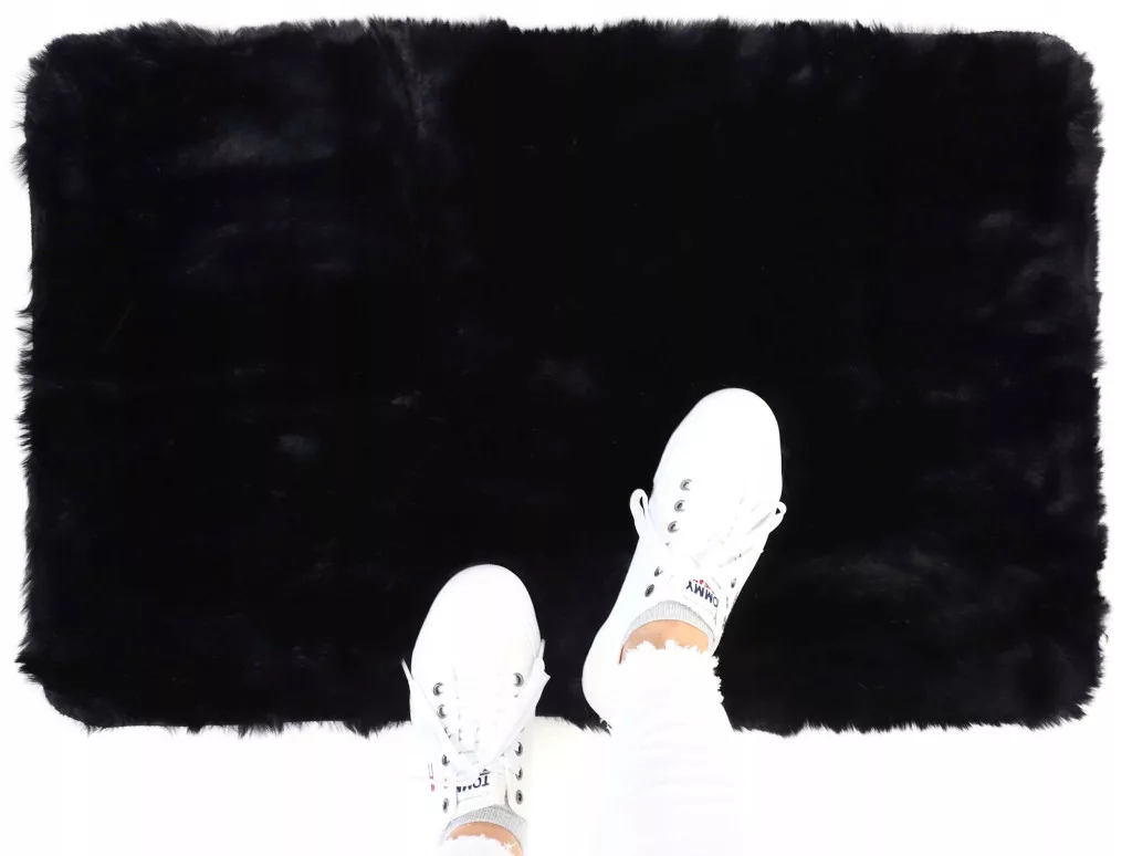 KANINCHEN-PLÜSCH-SAMTTEPPICH KANINCHENHAAR SCHWARZ WASCHBAR 80x120 CM