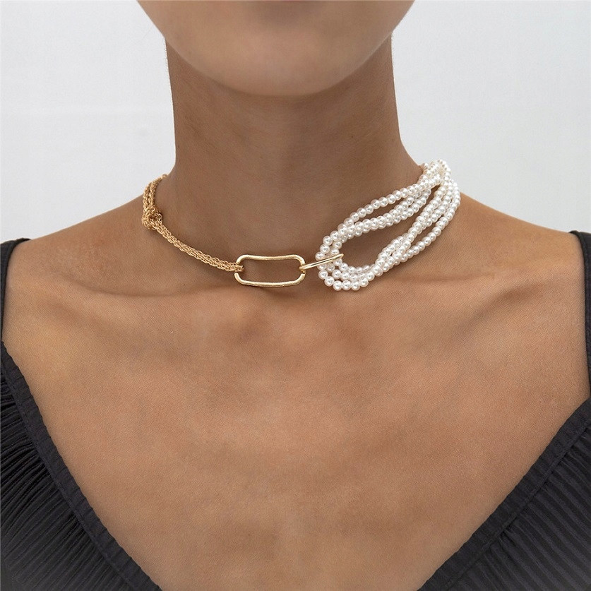 Łączony naszyjnik typu choker - łańcuszek + perły