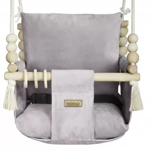 Huśtawka marki KIDABOO™ wykonana z mięciutkiego materiału Velvet który charakteryzuje się łatwym utrzymaniem w czystości. Huśtawka posiada wyższe oparcie, które chroni główkę oraz plecki najmłodszych już siedzących dzieci. Huśtawka została wykonana przez nas w Polsce, w pełni hand-made.