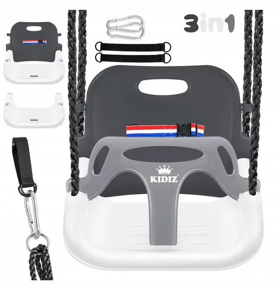 KIDIZ 3 w 1 Huśtawka dla dzieci – regulowana do wzrostu Twojego dziecka, przeznaczona do użytku wewnątrz i na zewnątrz, z regulacją wysokości od 93 cm do 165 cm, wykonana z wysokiej jakości materiałów i zapewniająca maksymalne bezpieczeństwo.