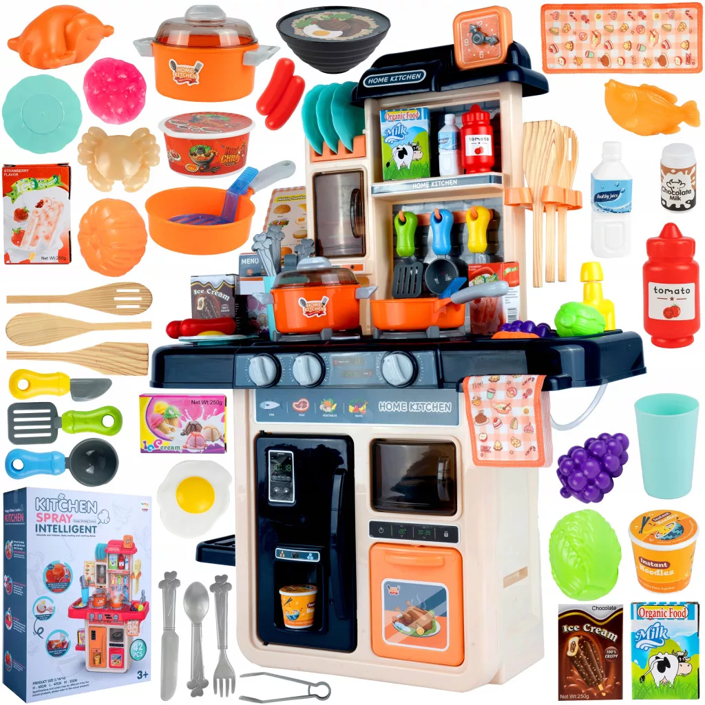 • Łącznie aż 42 akcesoria (owoce, warzywa, naczynia, sztućce, talerze, ścierka, oraz inne)