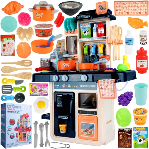 Śliczna kolorowa kuchnia na z wieloma funkcjami zachwyci każdego małego kucharza. Kryje w sobie wiele niespodzianek.