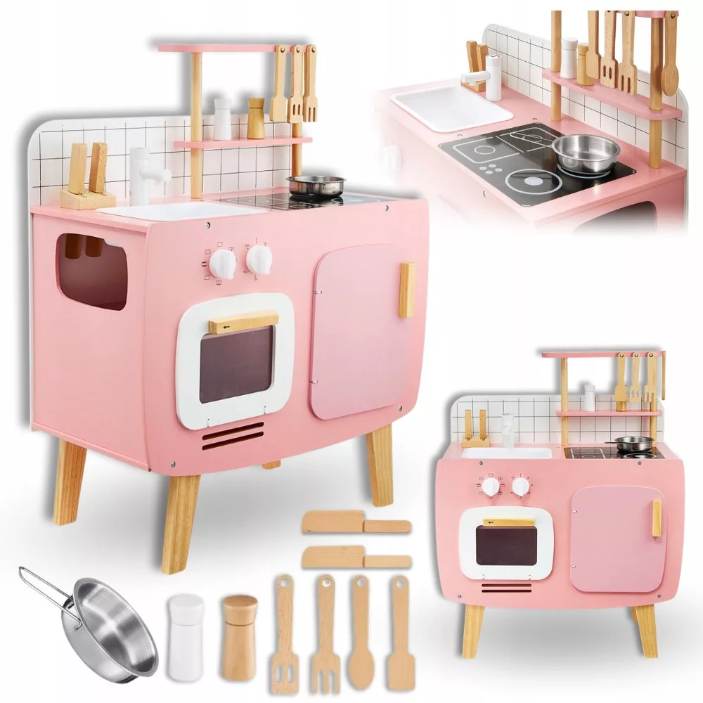 ⭐KUCHNIA DLA DZIECI DREWNIANA RETRO PASTELOWY RÓŻ⭐