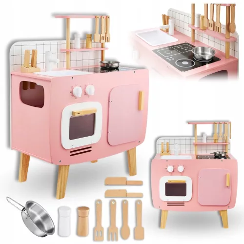 KINDERKÜCHENSET AUS HOLZ FÜR MÄDCHEN RETRO BOHO + ZUBEHÖR