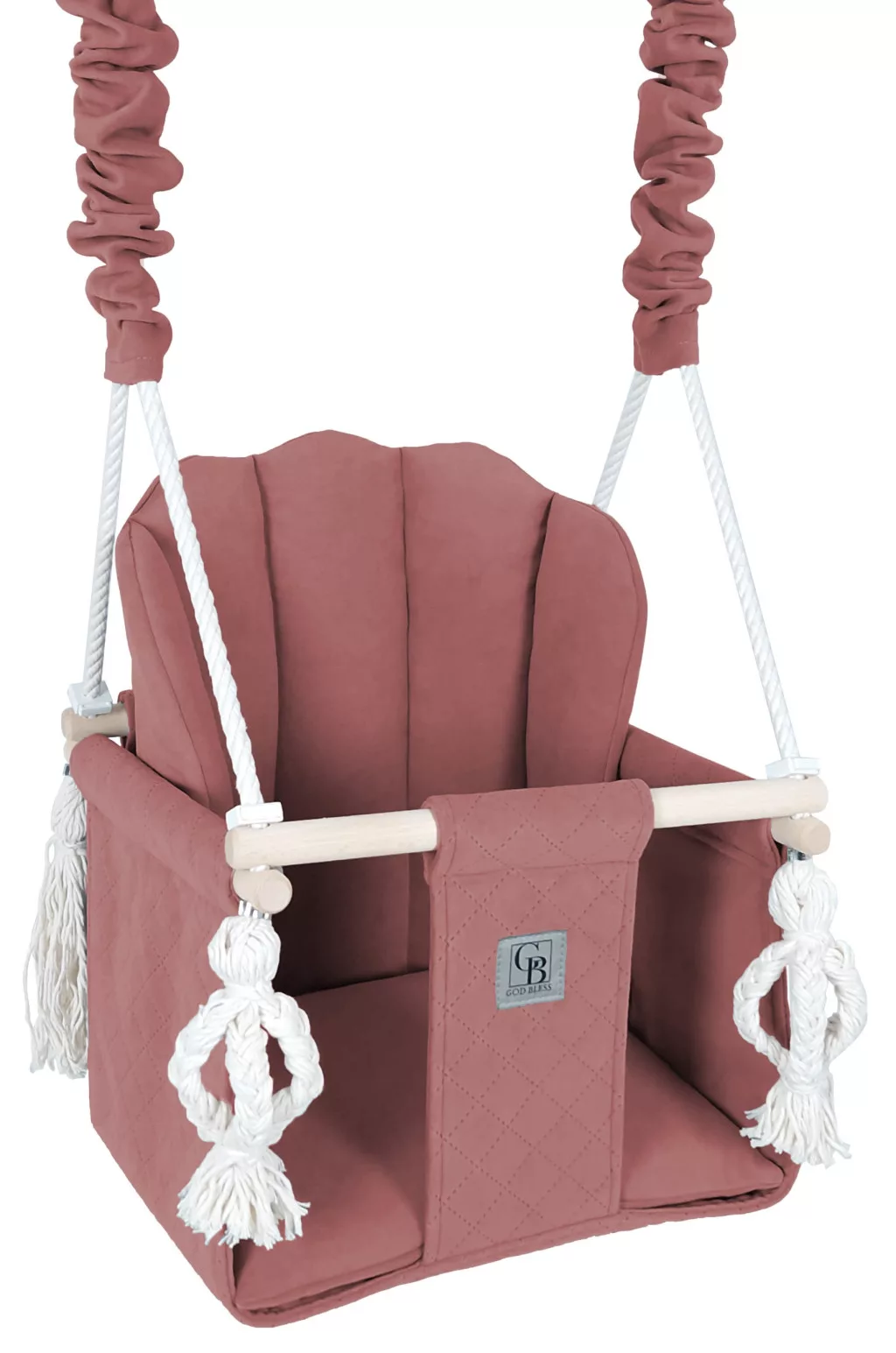 ✅wzmocnione siedzisko niewidoczną sklejka wszytą w poduszkę pod pupką dziecka co sprawia że huśtawka się nie zniekształca