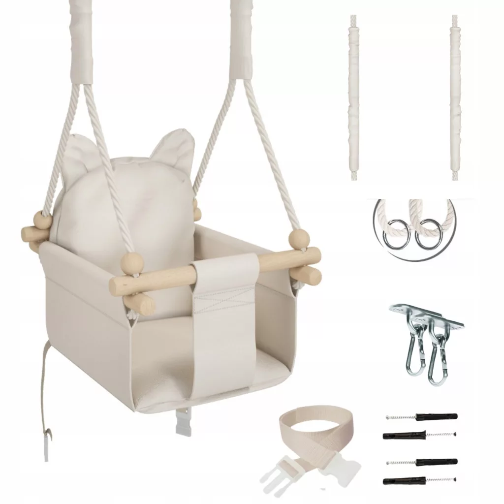 KINDERSCHAUKEL mit BÄRENRÜCKENLEHNE + SICHERHEITSGURT + HAKEN - für Haus, Garten