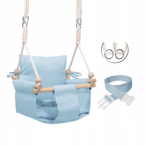 MAMOI® Huśtawka dla dzieci do domu i ogrodu w stylu skandynawskim z poduszkami i koralami w kolorze - NIEBIESKIEGO ORAZ PASEM W ODCIENIU NIEBIESKIM.