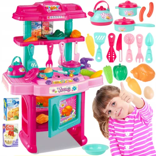 W zestawie znajdziesz mnóstwo elementów, które nie tylko uradują malucha, ale także rozwiną jego zdolności manualne. Nasza kuchnia to nieodłączny element wyposażenia każdego młodego kucharza.