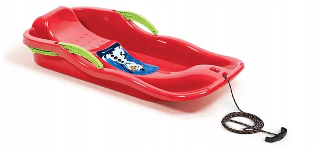✅   Głębokie sanie dziecięce plastikowe z dźwigniami do hamowania i sterowania.