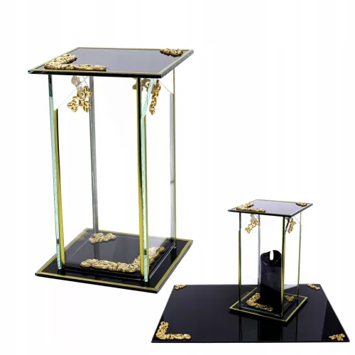 Prosty ozdobny szklany znicz kapliczka w kolorze czarnym ze złotymi ornamentami GLASS DEKOR