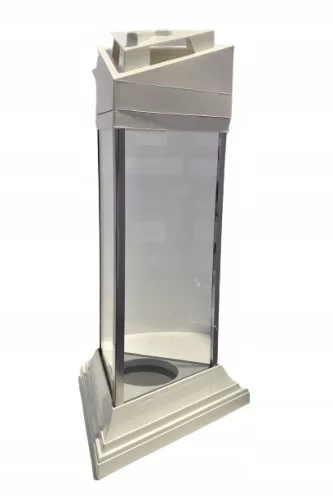 Wykonany jest ze szkła bezbarwnego oraz podstawki i wiatrochronu z twardego plastiku.