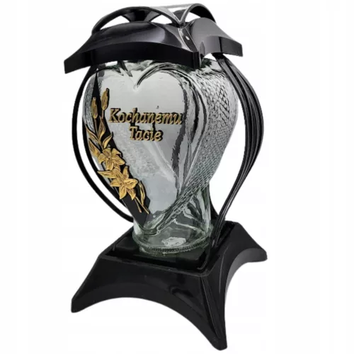 Wysokiej jakości lampion szklany. Zdejmowana pokrywa umożliwia łatwe umieszczenie wkładu wewnątrz znicza. Lampion posiada elementy ozdobne wykonane z tworzywa.