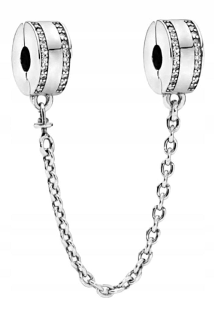 Prezentujemy łańcuszek zabezpieczający klips wykonany ze srebra próba S925 (próba wybita na łańcuszku).