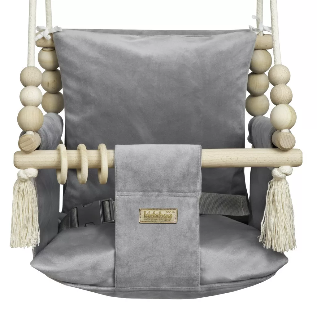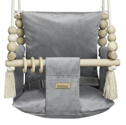 KIDABOO Plusz Velvet Huśtawka dla dziecka DOM OGRÓD POKOJ PAS CE SZARA