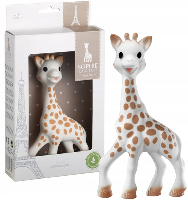Żyrafa Sophie to pozornie zwykły, mały, gumowy gryzak. Zwierzątko o wzroście 18 cm, koloru złamanej bieli, z brązowymi cętkami, ma 4 nogi, parę uszu i parę rogów. Ale… już od 60 lat jest nieustająco najpopularniejszym „pierwszym gryzakiem” kolejnych pokoleń francuskich niemowląt. Jej sława objęła cały świat, a samą Sophie można już spotkać wszędzie zarówno pod zwykłą strzechą jaki i w pałacach królewskich. Swym urokiem podbija serca nawet kapryśnych gwiazd. Co roku jest nagradzana przez różne stowarzyszenia i organizacje w kategorii najlepszego prezentu czy też artykułu dla niemowlaka.
