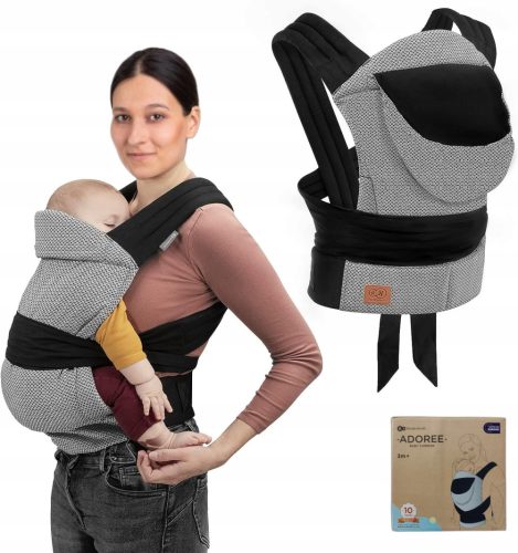 Ergonomiczne nosidełko ADOREE typu Mei Tai pozwala na swobodne przenoszenie dziecka podczas spacerów i czynności domowych. Dziecko jest blisko rodzica w prawidłowej pozycji główki, bioderek, pleców oraz nóżek. Panel otulający jest szeroki, utrzymuje dziecko w naturalnej dla kręgosłupa tzw. pozycji "żabki", a zagłówek podtrzymuje główkę.