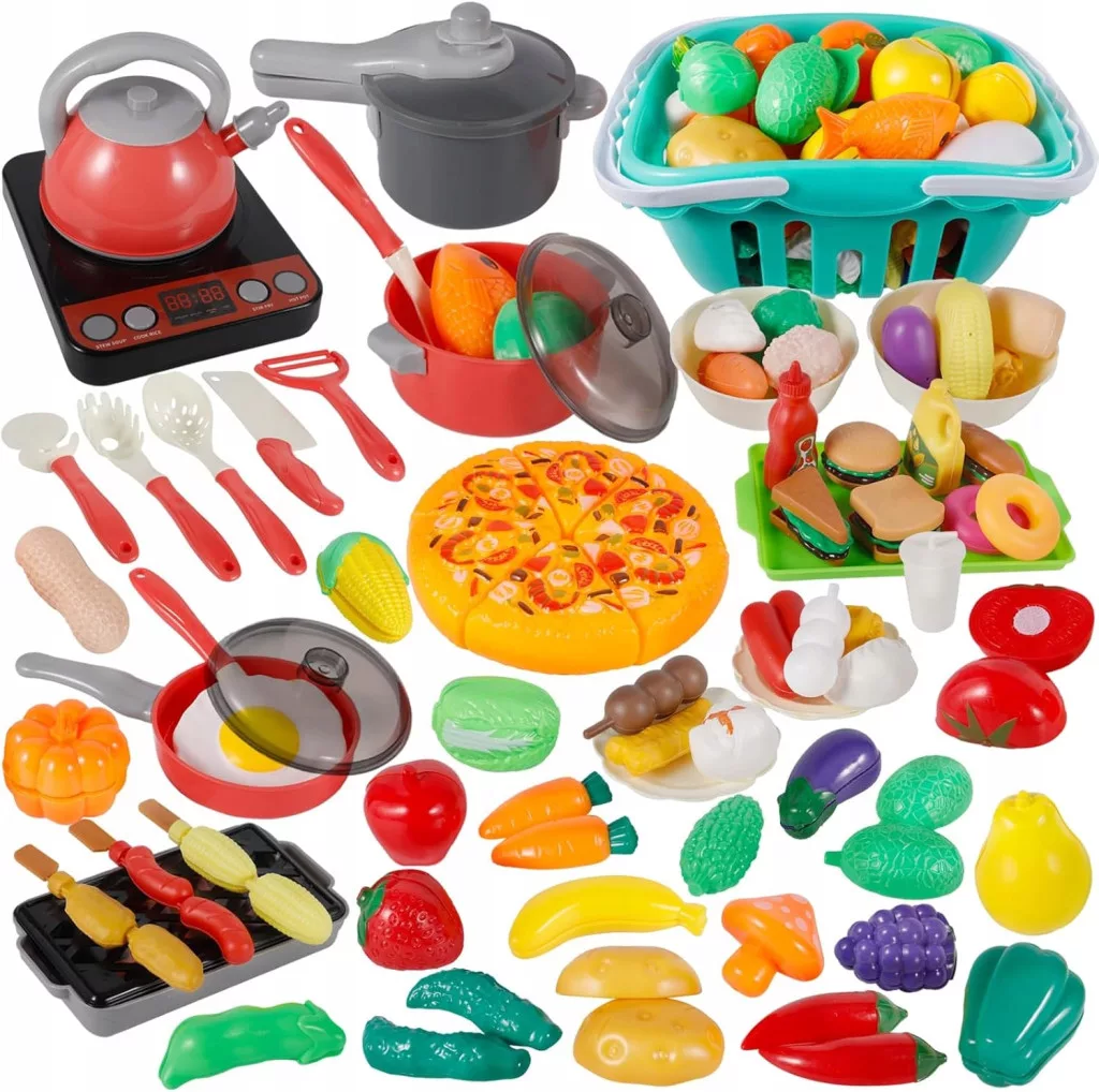 ✅Kompletny zestaw kuchenny do gotowania Każdy zestaw kuchenny zawiera zabawne i wciągające zabawki kuchenne, w tym zestaw garnków i patelni, czajnik, miski, talerze, zabawkową kuchenkę kuchenną, zestaw do grillowania, zestaw noży, jedzenie i warzywa, zestaw fast food i wiele innych, które zapewniają niekończącą się zabawę.