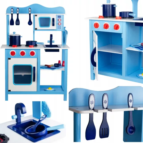 HOLZKÜCHE FÜR KINDER ZUBEHÖR BLAUES SPIELZEUG GROSSE TÖPFE