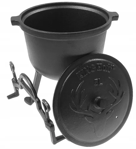 KOCIOŁEK Żeliwny 5 Lit Garnek MYŚLIWSKI Pieczonek Na Ognisko EKSTRA JAKOŚĆ