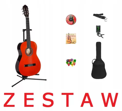 Idealnie sprawdzi się na lekcje gry. W gitarze zamontowane są struny nylonowe.