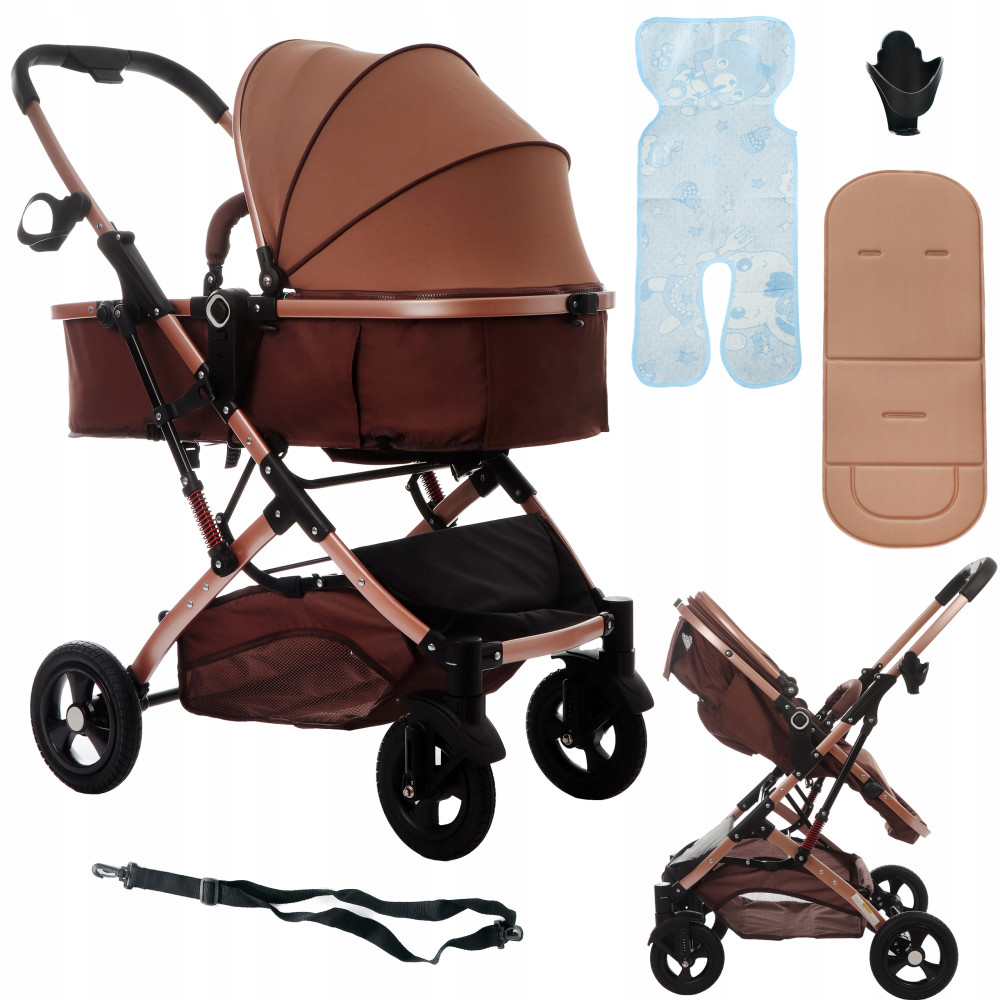 Bezpieczny, wielofunkcyjny brązowy wózek dziecięcy Koetsi ze złotą aluminiową ramą