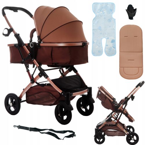 Lekki, wielofunkcyjny wózek dziecięcy Koetsi 3w1 w kolorze brązowym.