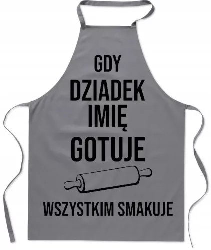 Fartuch kuchenny z modnym nadrukiem Gdy Dziadek Gotuje Imię Dzień Dziadka.