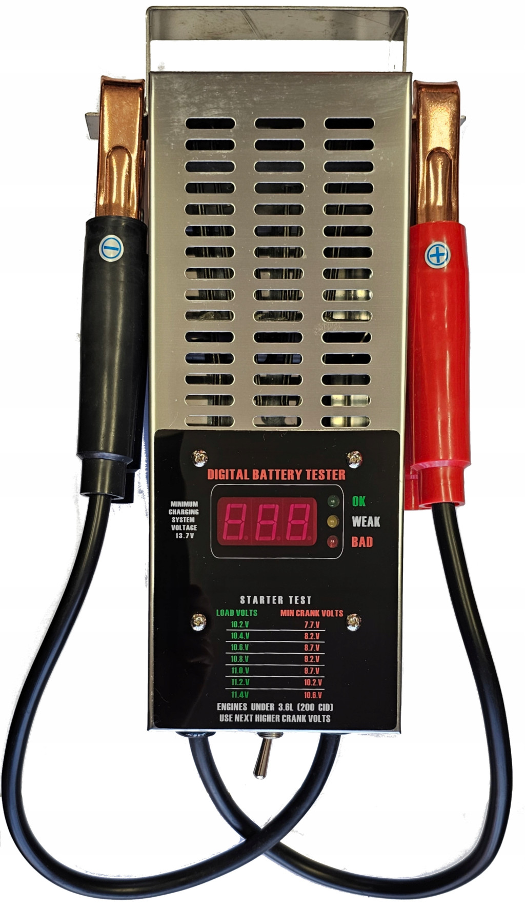 Tester umożliwia sprawdzenie poziomu naładowania akumulatora, oraz pozwala określić stopień jego wyeksploatowania.