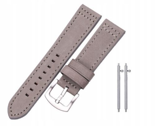 • Pasek skórzany szary 22 mm, srebrna klamra