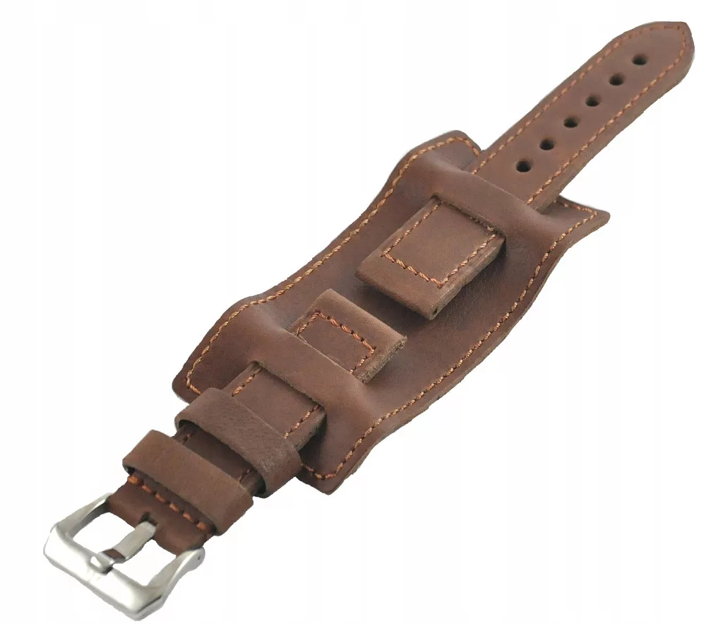 Pasek do zegarka z podkładką. Pasek w stylu: Diesel, Fossil lub Vintage. Wykonany ze skóry cielęcej. Pasek do zegarka o szerokości 22mm. Długość samej podkładki to 110mm a serokość to 50mm. Pasek jest wykonany ręcznie. Część z dziurkami ma 115mm a część gdzie jest sprzączka ma 75mm.