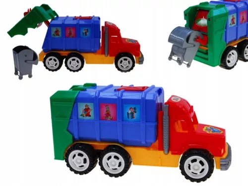 Dzięki szerokim kołom śmieciarka jest pojazdem na każdy teren. Przyjemne, żywe kolory przyciągną uwagę każdego dziecka, zachęcając do zabawy