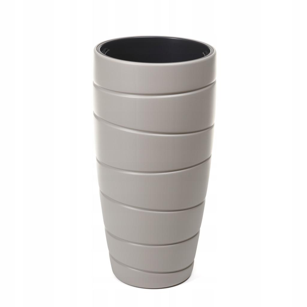 Tę linię charakteryzują wyraźne, poziome wgłębienia biegnące pod kątem i oplatające całą donicę. To najbardziej liczna rodzina, gdyż składa się aż z pięciu produktów. Trzy okrągłe, różnej wysokości donice posiadają ten sam wkład - o średnicy 38 cm, najwyższa ma prawie 80 cm. Dwie pozostałe mają kształt owalny. Wkład wyposażony jest w sznurki, co ułatwia jego wyjmowanie. Proponujemy cztery kolory: biały, kremowy, taupe, oraz antracyt. Kolekcja składa się z kilku rozmiarów, które idealnie się ze sobą komponując, umożliwiają tworzenie atrakcyjnych aranżacji. Donice zachowują przy tym właściwości charakterystyczne dla technologii, w jakiej są produkowane. Są lekkie, wytrzymałe, odporne za zarysowania i mrozoodporne.